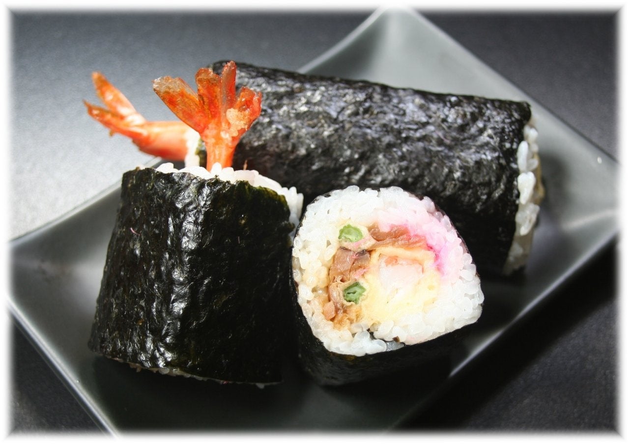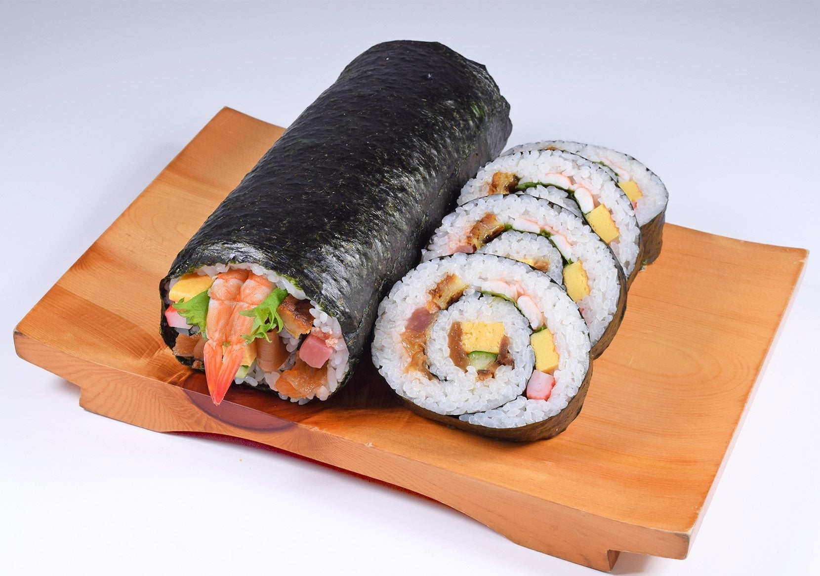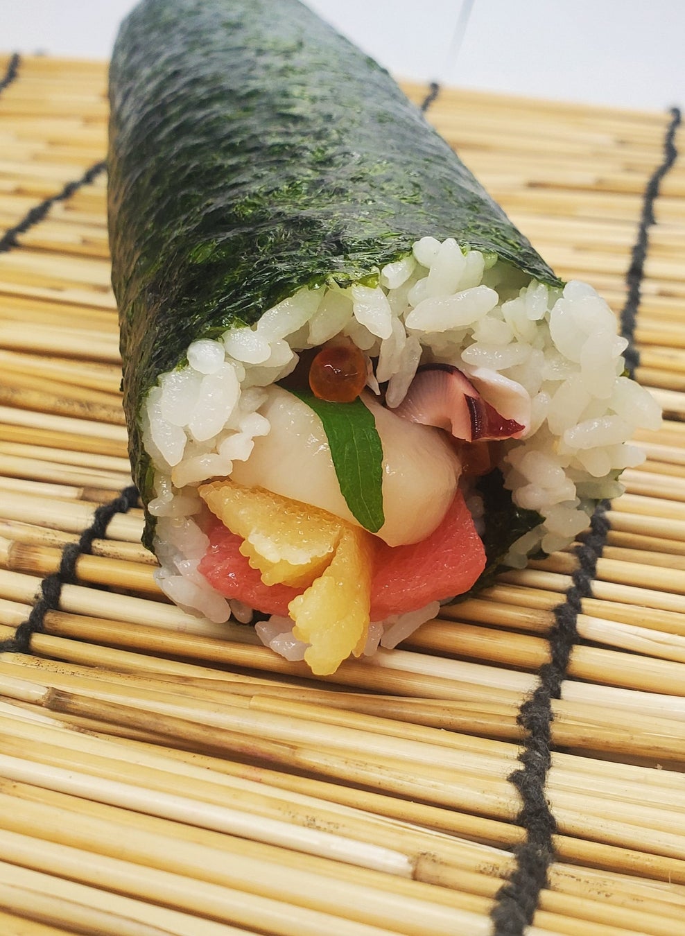 (海老、蟹風味蒲鉾、厚焼玉子、かんぴょう、椎茸、胡瓜、赤でんぶ)