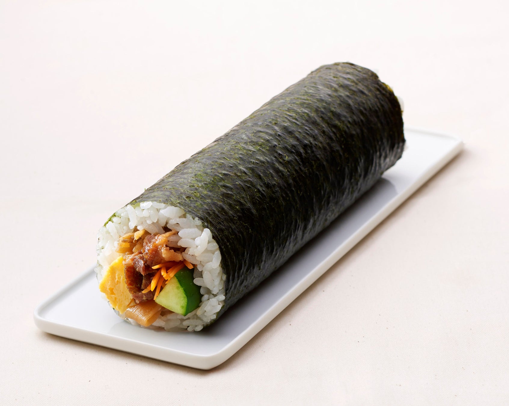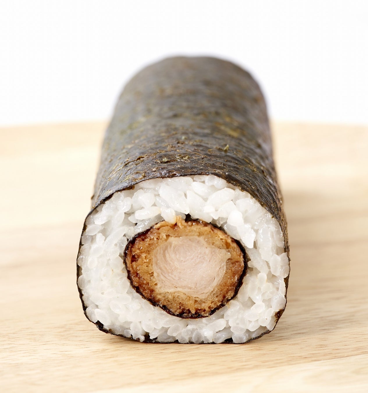 柔らか棒状ヒレかつを特製のソースで味を付けて、太巻きにしました。