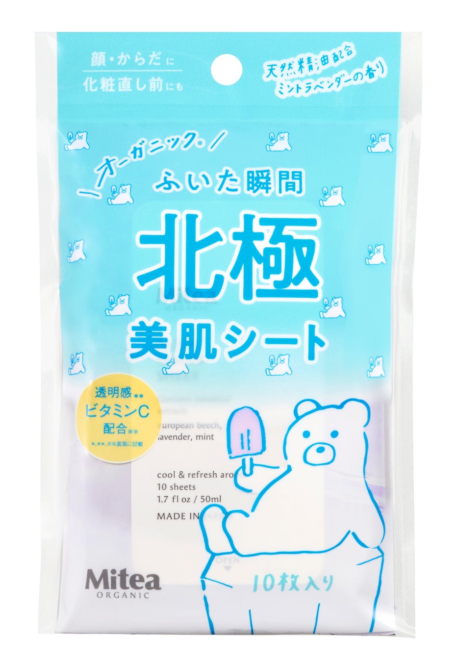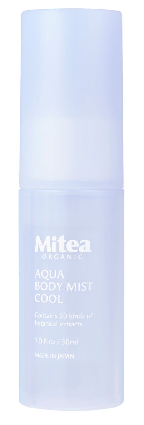 Mitea ORGANICこだわりの植物エキスが乾いた肌をみずみずしく潤し、暑さによる不快なにおいや汗、べたつきもすっきりクリアに導き、清々しく快適な毎日をサポートするボディ用ミストと冷感シートも数量限定で発売いたします。