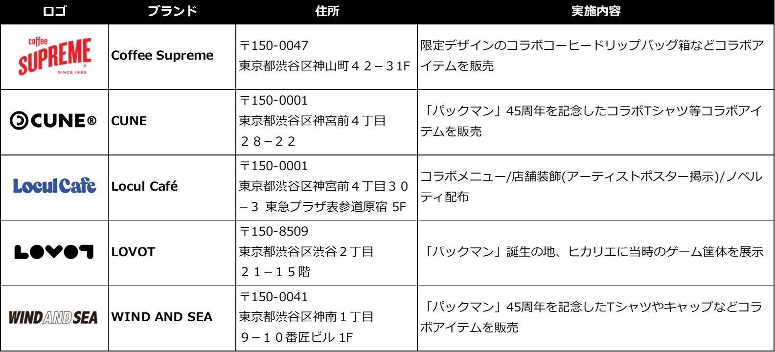 渋谷や原宿エリアを代表するブランドがコラボレーションを実施。多数のブランドとのコラボレーションにより、「パックマン」の45周年をブランドの垣根を超えて盛り上げます。
