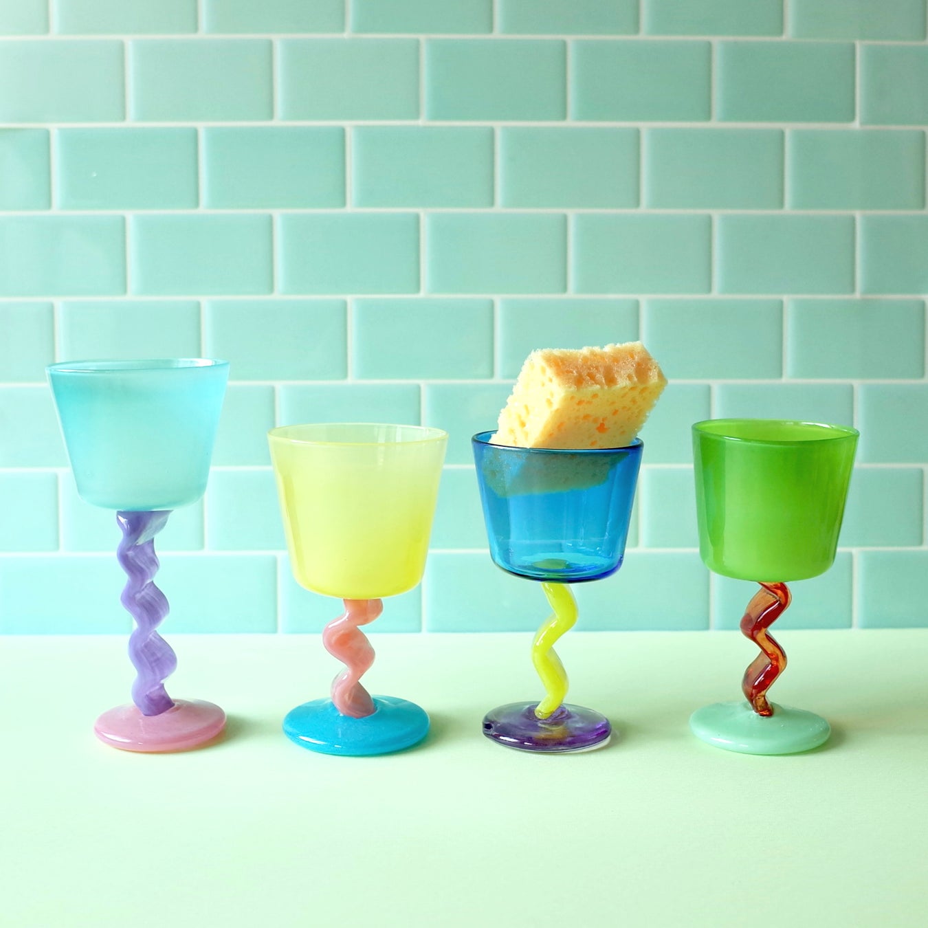 吹きガラス作家 Miwa Itoさんが、主に海外ポップカルチャーに影響を受けて作った色鮮やかでPOPなゴブレット。
