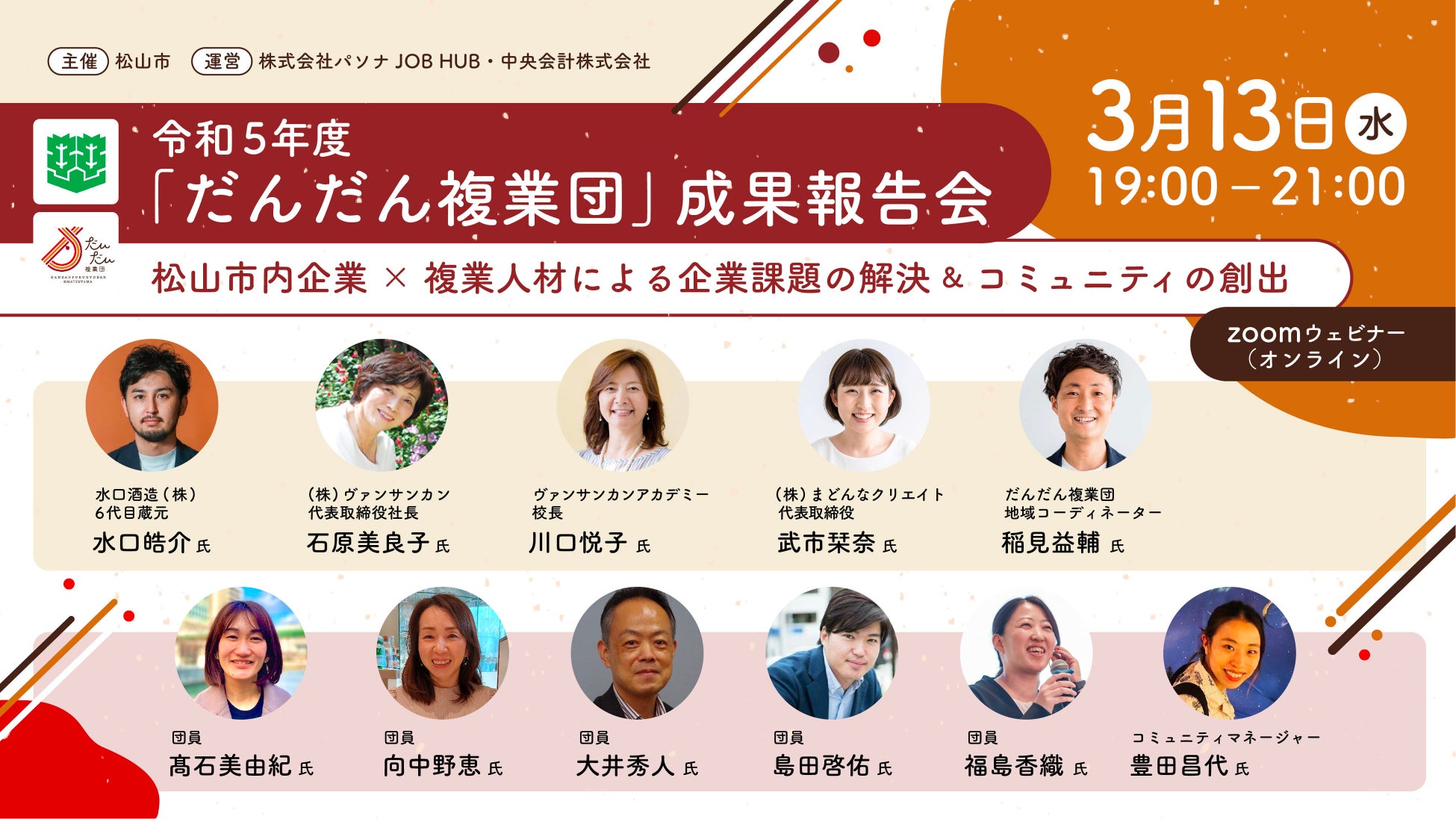 松山市の中小企業と都市部人材のマッチング事業「だんだん複業団」 成果報告会『市内企業×複業人材による課題解決&コミュニティ創出』 3月13日開催