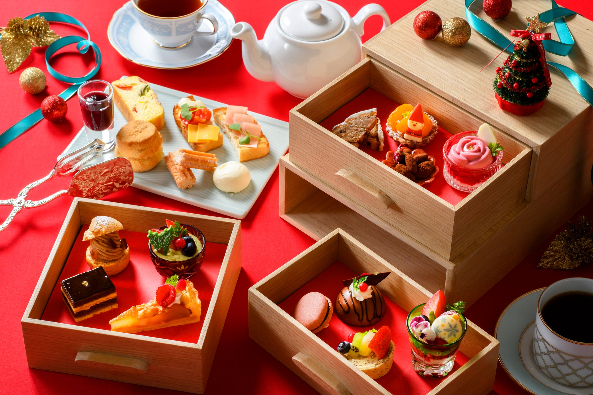 クリスマス期間限定のデコレーションに彩られた繊細で愛らしいスイーツで、贅沢で優雅なひとときをお過ごしください。