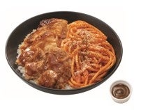 【内容】生姜とニンニクのパンチが効いた生姜焼きのタレで味付けした豚ロース肉と鶏もも肉、太麺ナポリタンの合い盛り丼です。味の変化を楽しめるカレーソース付きです。総重量約430グラムのボリューム満点の一品です。
