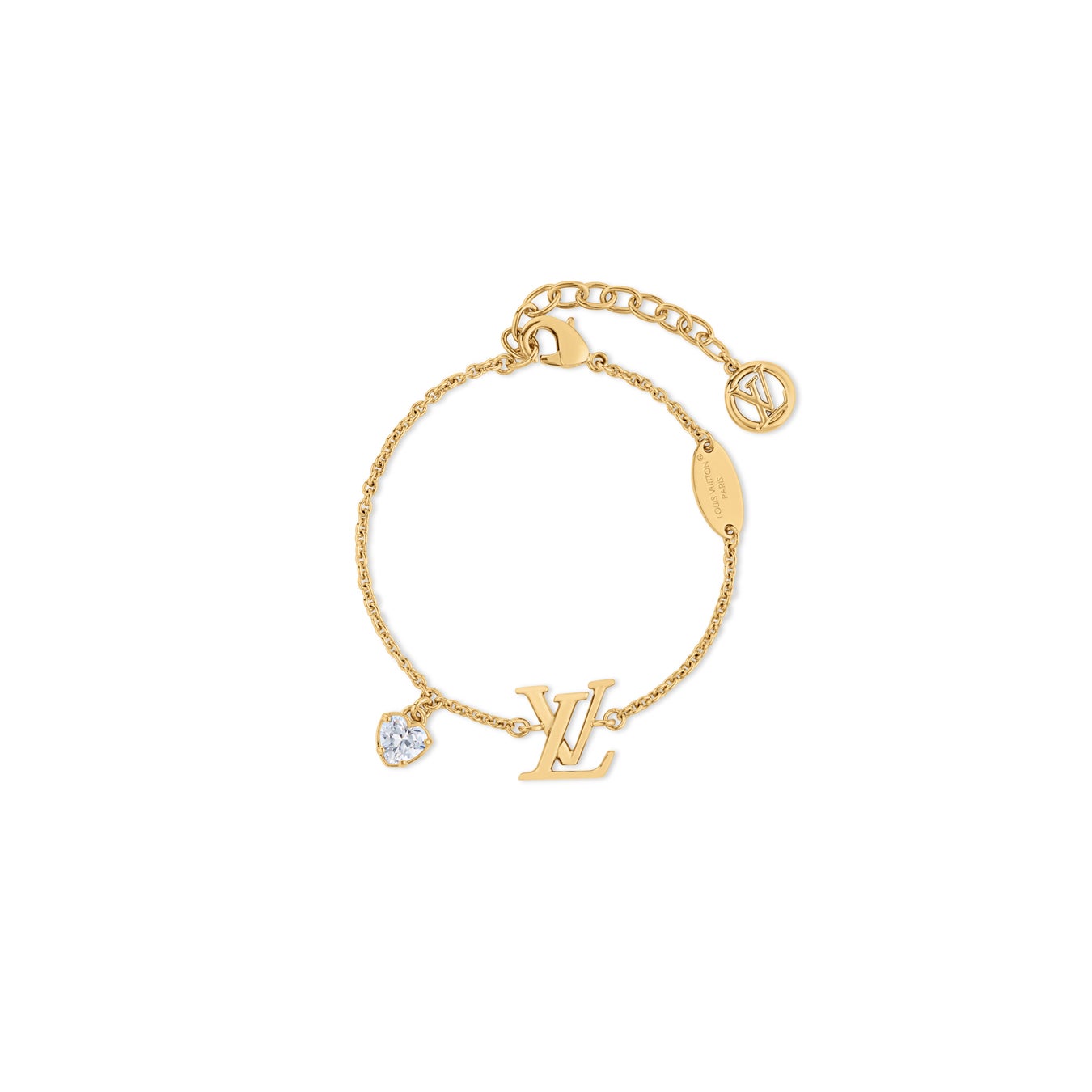 エレガントで上品な「ブレスレット·LV アイコニック ハート」は、きらめくジルコンのハートチャームに、艶やかなゴールドカラーのメタルで繊細に象ったLV イニシャルのエンブレムをあしらいました。あらゆる装いにさりげなくフェミニンでグラマラスな魅力を添えるアイキャッチーなブレスレットです。