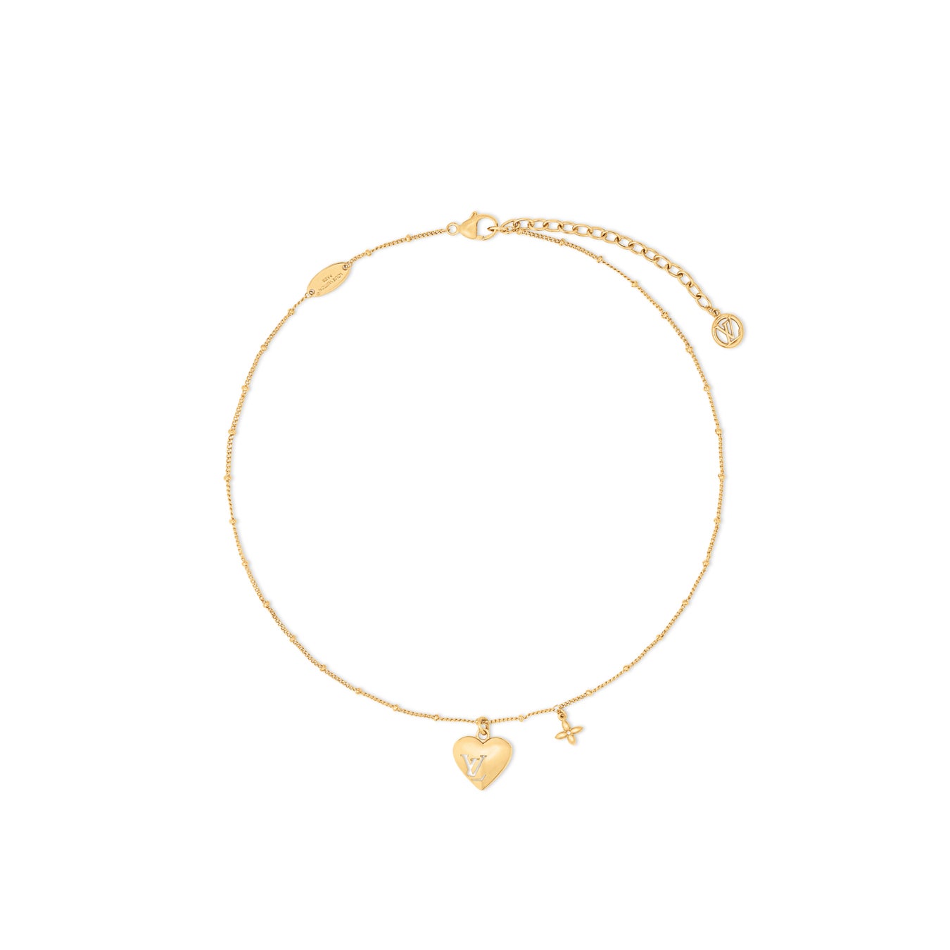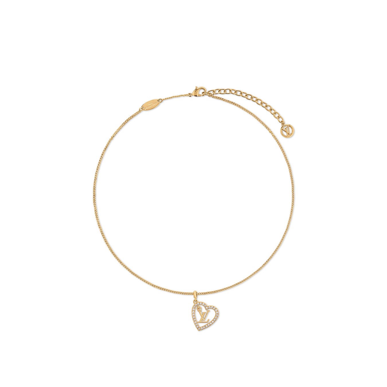 「ネックレス·LV アイコニック ハート」は、ゴールドカラーのメタルで象ったLV イニシャルに、きらめくジルコンを散りばめたハートでアクセントを効かせたペンダントトップが、細いリンクチェーンに繊細に揺れ動きます。アジャスターチェーンを彩るLV サークルのチャームがアイコニックな華やかさをプラス。