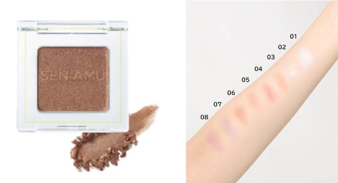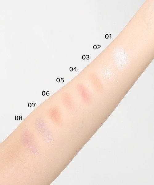 カラー:01フロスティーホワイト/02サンシャインベージュ/03リネンオレンジ/04シアーブルームピンク/05シルキーピンクブラウン/06ウッディブラウン/07シマーダスティグレー/08フォギーパープル