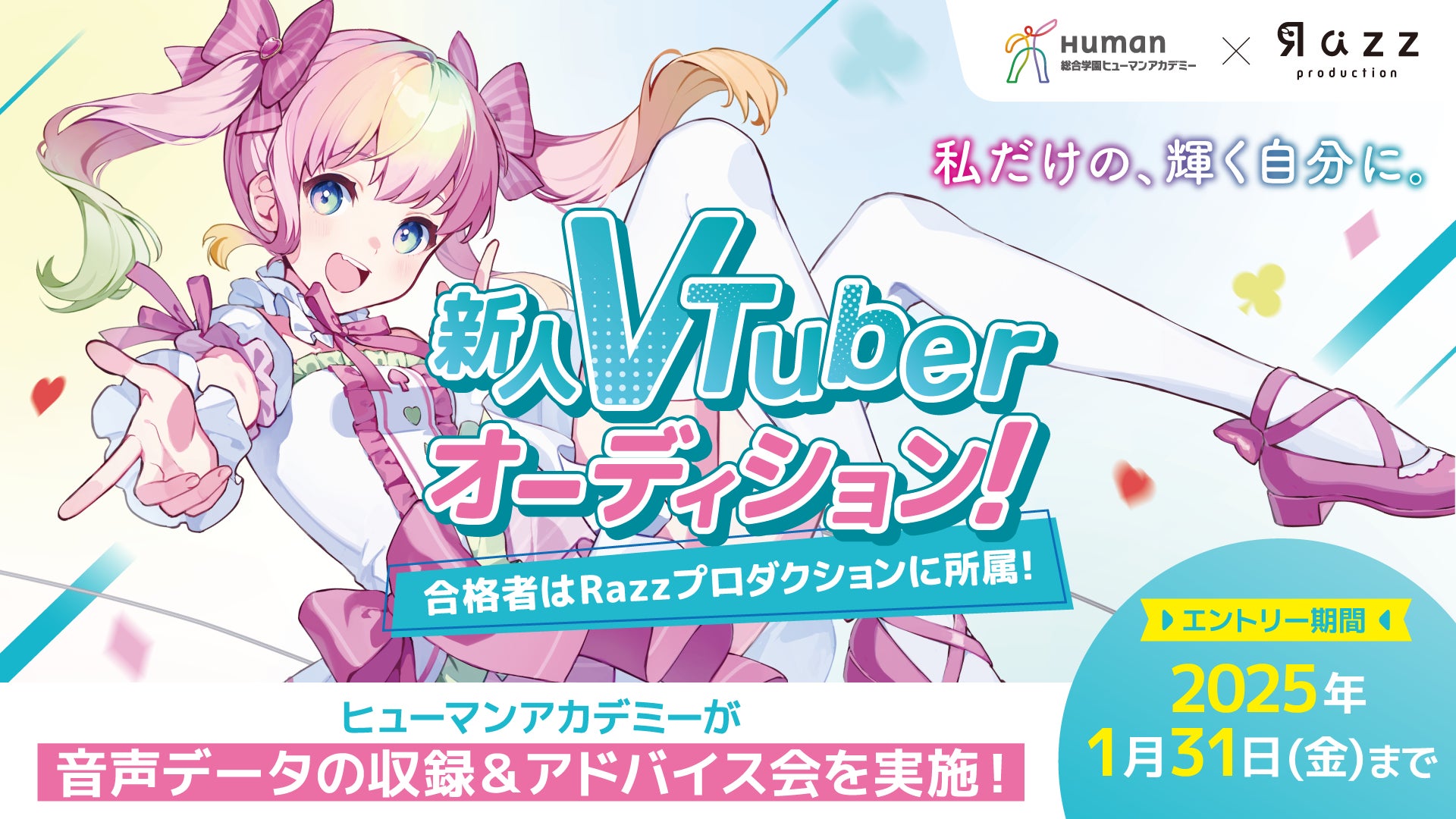 教育事業を展開するヒューマンアカデミー株式会社(本社:東京都新宿区、代表取締役:今堀健治、以下「当社」)は、次世代のVTuber育成を目指し、「Razzプロダクション」とタッグを組み、オーディションを開催いたします。