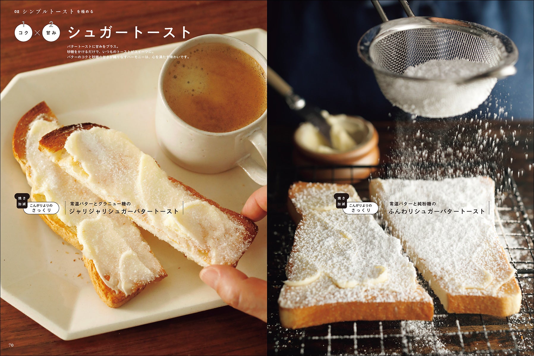 ・1つめの見どころは、朝の定番といえるシンプルなバタートーストやシュガートースト、ジャムトースト、チーズトーストなどのつくり方を、ていねいに解説しているところ。それぞれに適宜、アレンジの仕方やおいしくなるコツが紹介されています。