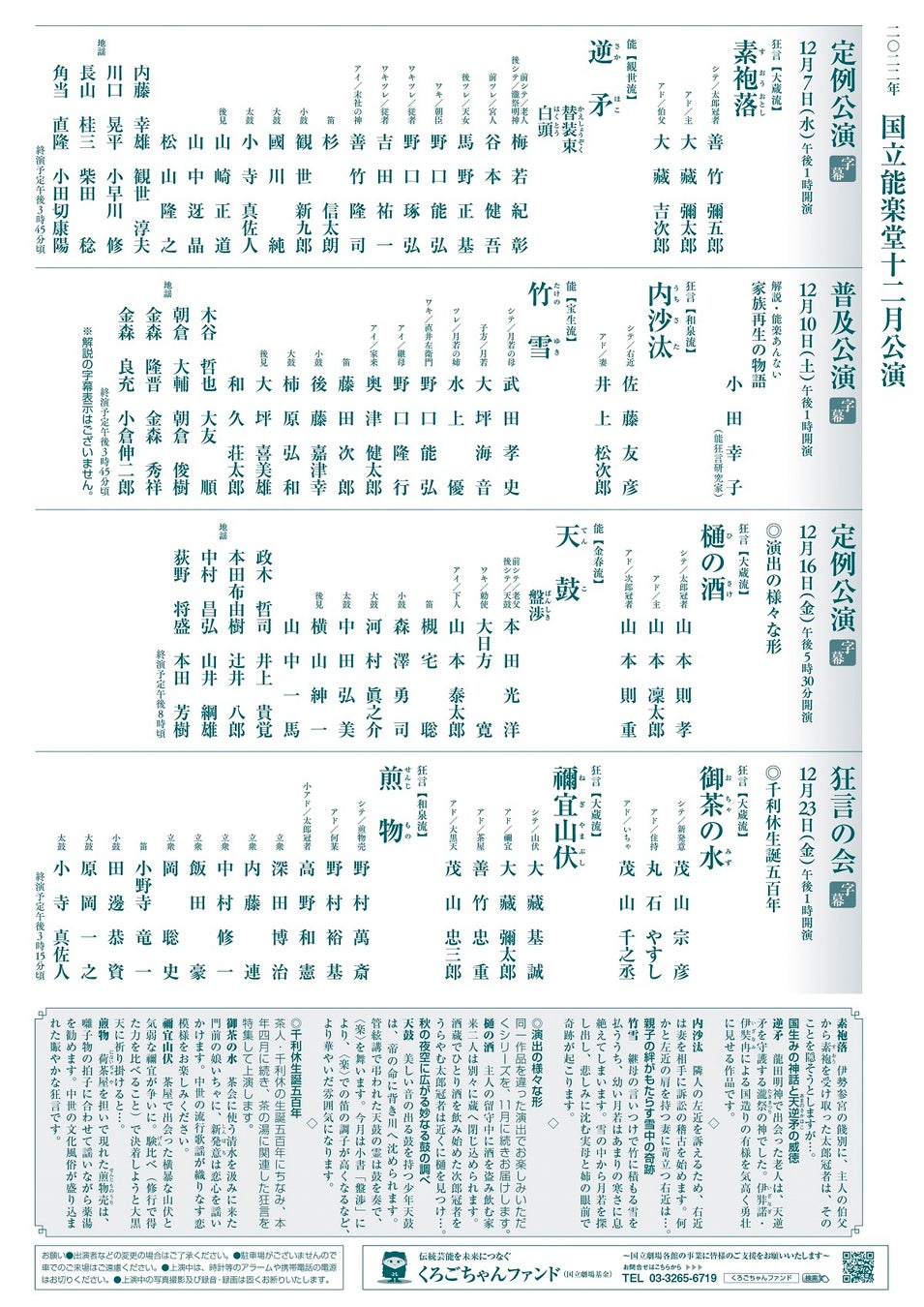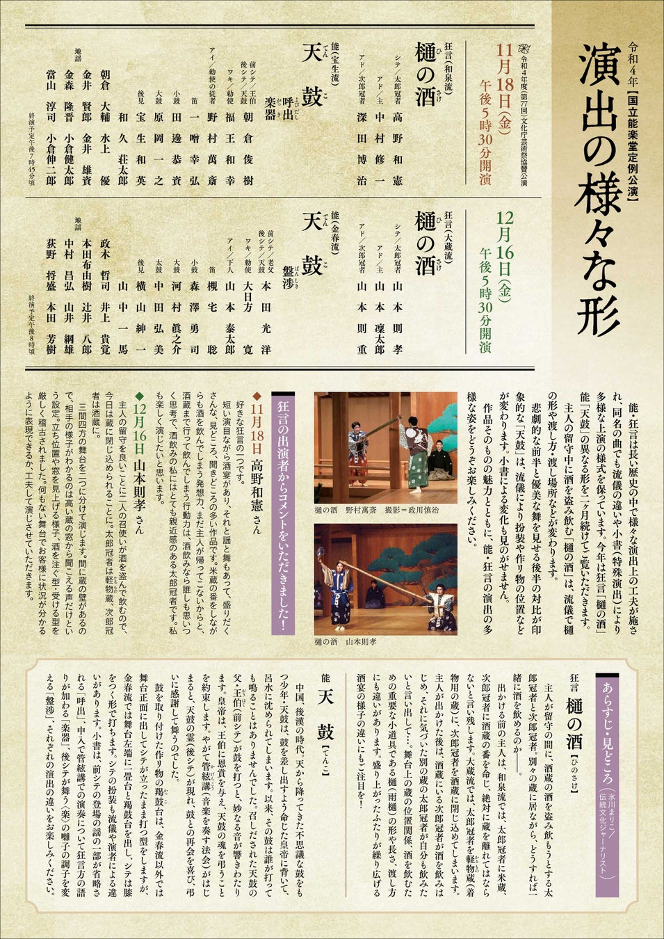 12月定例公演 樋の酒・天鼓 / 2022年12月16日(金)午後5時30分開演