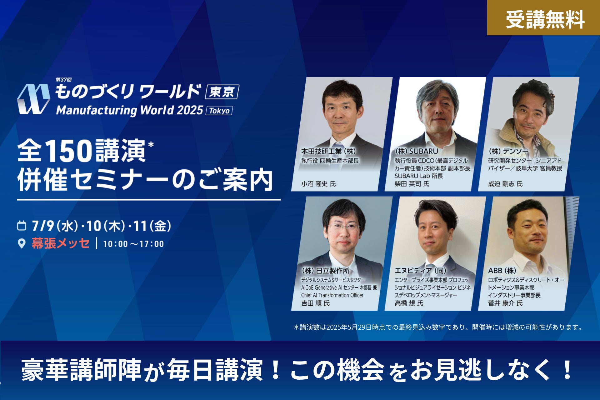 【申込み受付中!】 ホンダ/SUBARU/デンソー/日立/エヌビディア/ABB等が登壇!製造業での事例を学べる無料セミナーを開催 @幕張メッセ