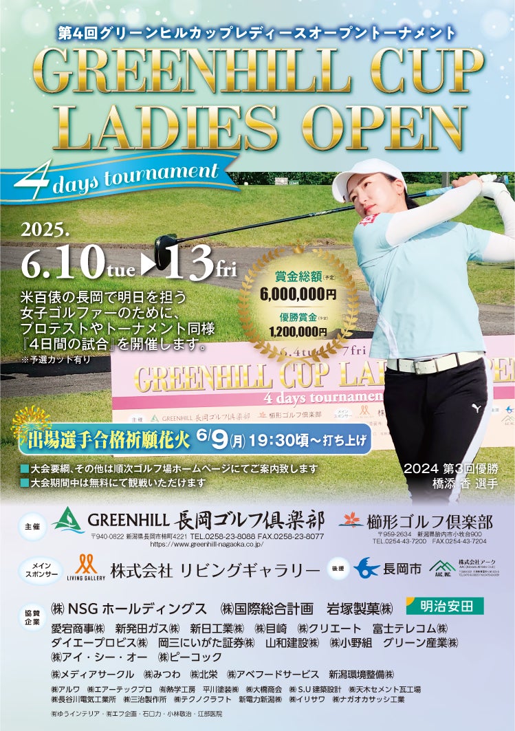 開催期間は、2025年6月10日(火)~13日(金)。会場は、新潟県長岡市柿町の「GREENHILL長岡ゴルフ倶楽部」です。