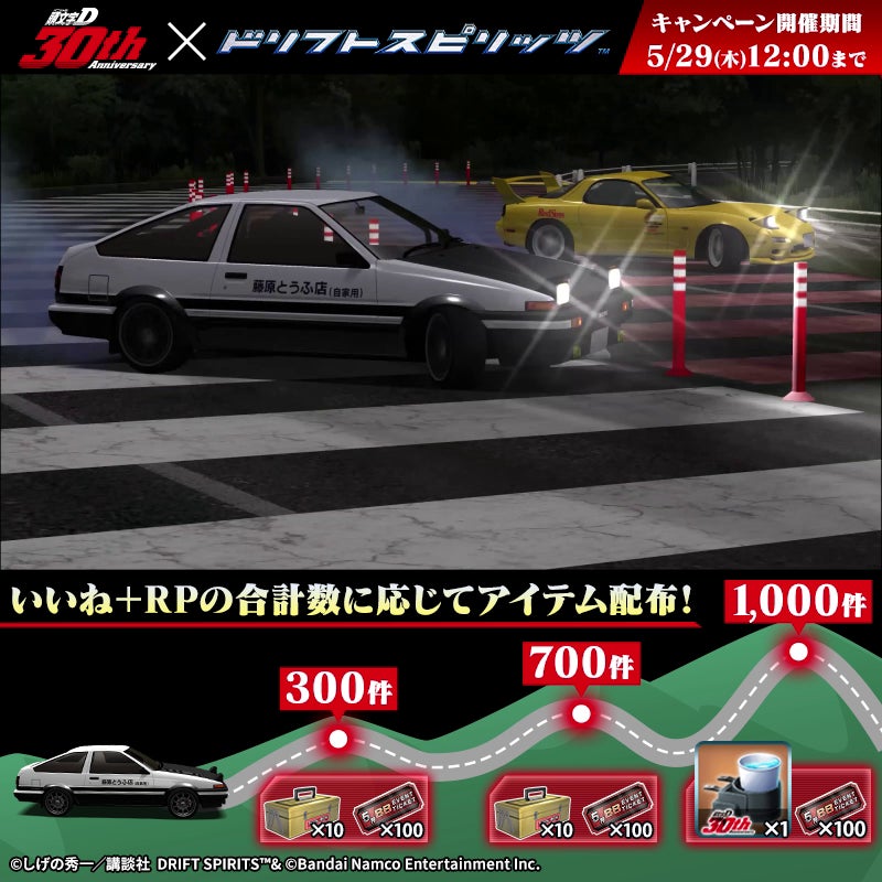 連載開始から30周年を迎えた『頭文字D』と『ドリフトスピリッツ』のコラボが開催中!!
