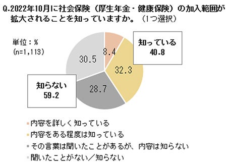 調査時(8月下旬時点)では、社会保険適用拡大について「知らない」が約6割