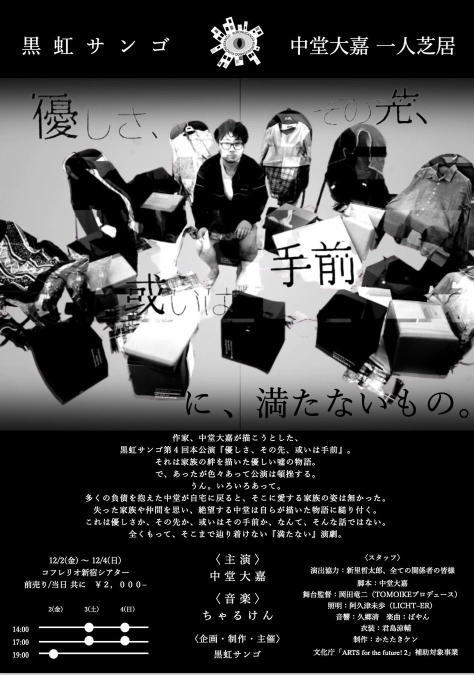 作家、中堂大嘉が描こうとした黒虹サンゴ第4回本公演『優しさ、その先、或いは手前』。
