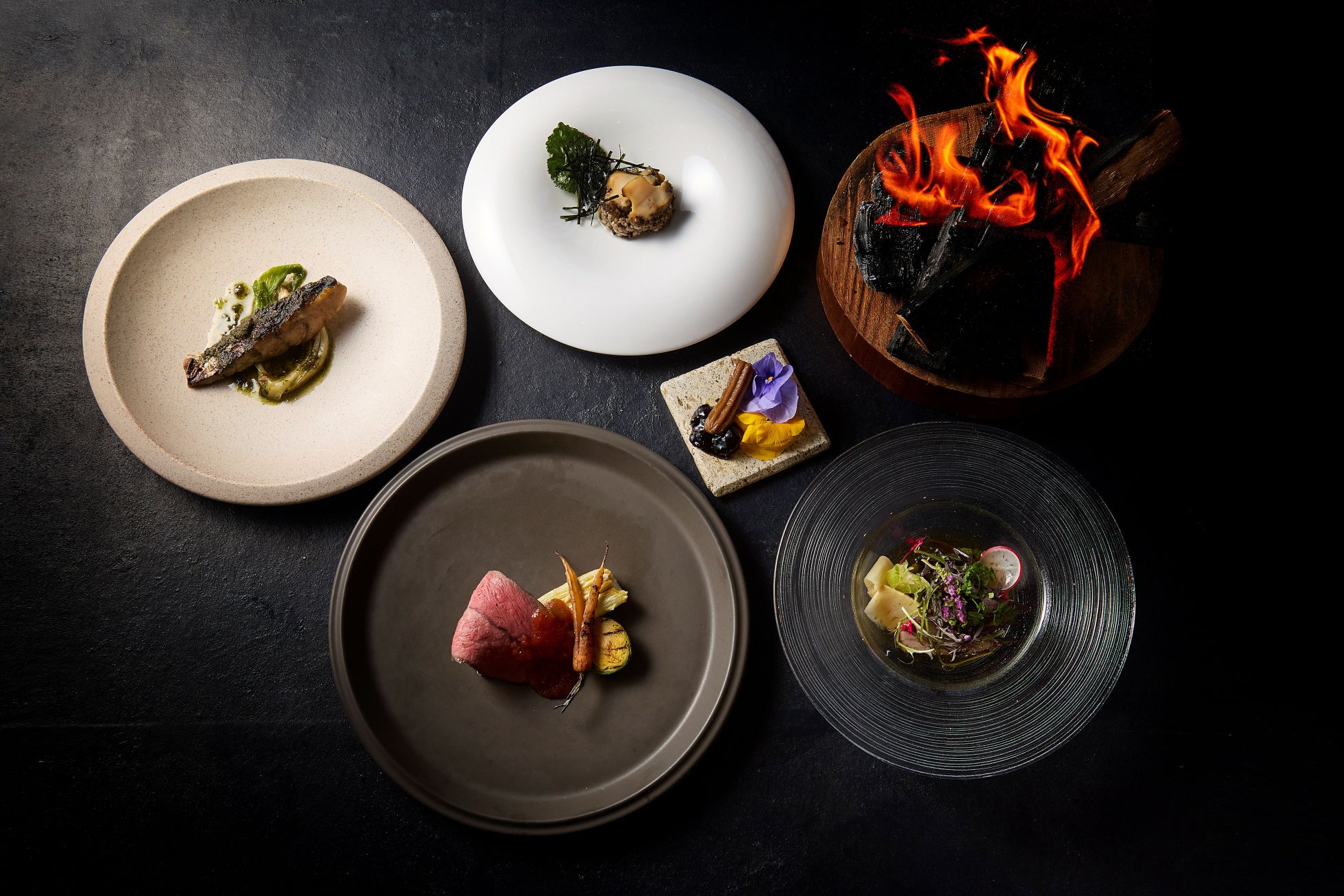 箱根リトリートföre & villa 1/f(所在地: 神奈川県足柄下郡箱根町仙石原)は、春の新メニューとして、薪火料理「WOODSIDE dining」と料亭「俵石」にて、旬の食材をふんだんに使用した特別なコースの提供を2025年3月3日(月)から開始いたします。薪火を活かした調理法と季節の恵みを融合させたコースで、春の訪れを五感でお楽しみいただけます。