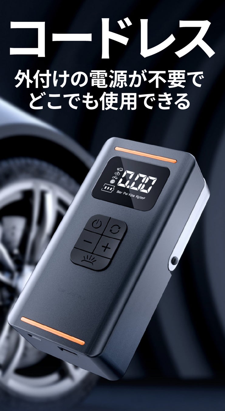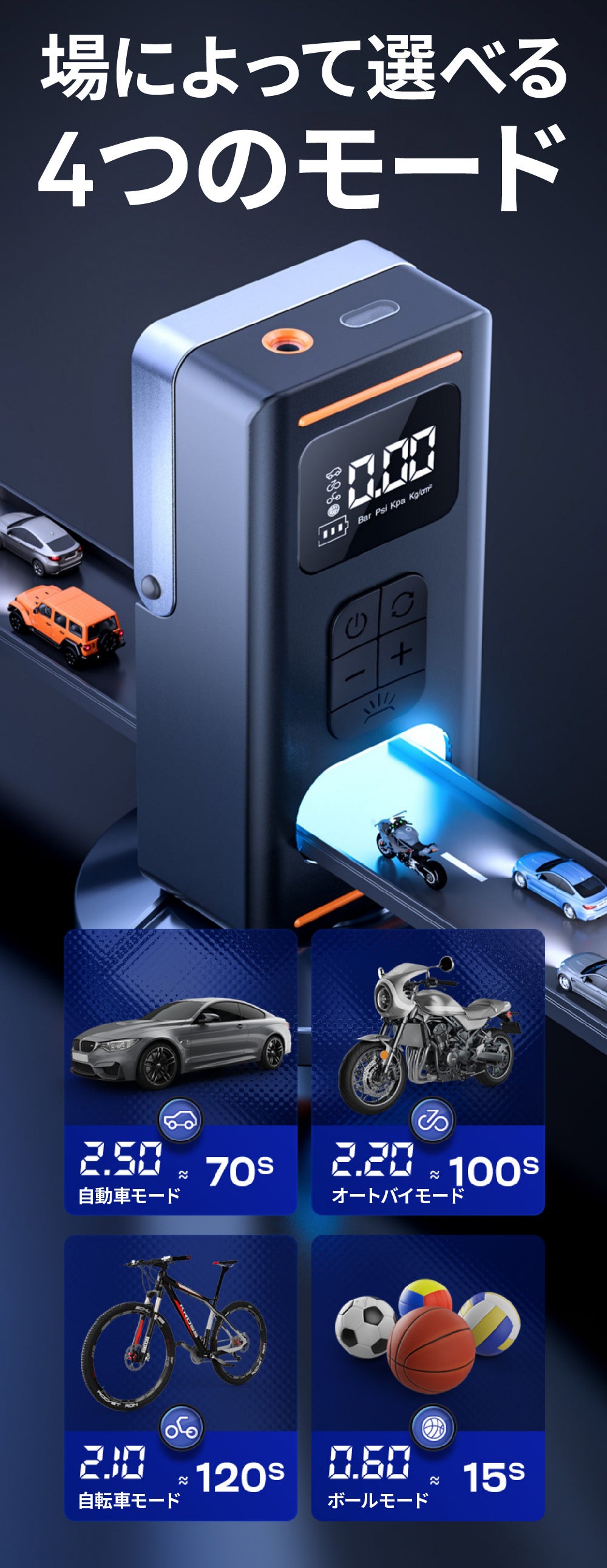 - 選べる4つのモードで簡単に空気注入が可能!6000mAh大容量バッテリー搭載の電動空気入れ