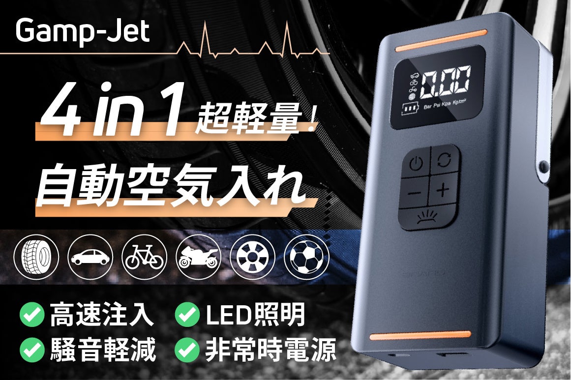 【目標金額達成!】自動センサー搭載でタイヤを適正空気圧に調整してくれる!痛快なる電動空気入れ「Gamp-Jet」をGREEN FUNDINGにてキャンペーン中(3月15日まで)