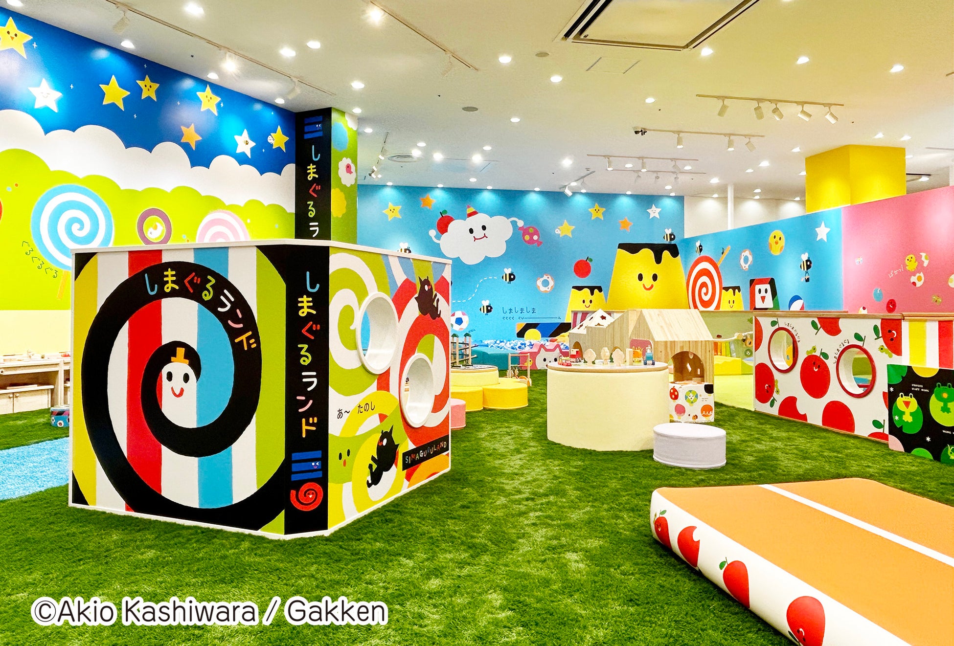 赤ちゃん絵本『しましまぐるぐる』(Gakken刊)をテーマとした常設インドアプレイグラウンド施設(有料)で、「ららぽーと堺」(大阪府堺市)、「イオンモール幕張新都心」(千葉県千葉市)、「ららぽーと名古屋みなとアクルス」(愛知県名古屋市)につづく4号店目の出店です。赤ちゃんが夢中になる「配色」と「デザイン」をモチーフにした遊びやおもちゃ、フォトスポットなどがあり、利用を0~2歳と限定することで、親子が安心して絵本の世界を楽しむことができる施設です。