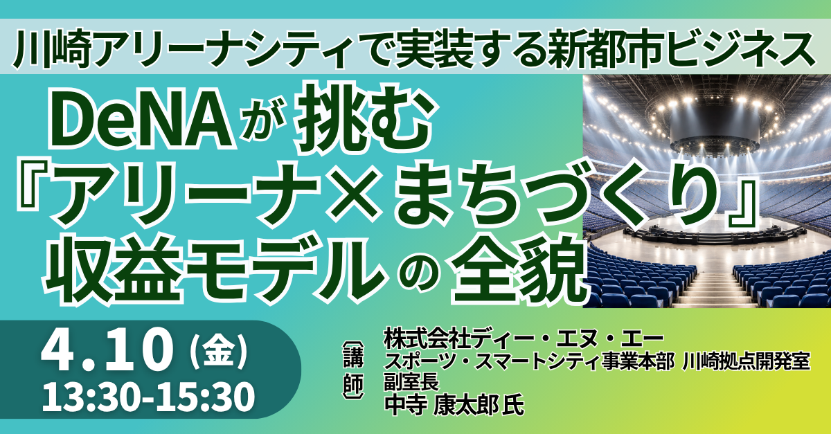 【JPIセミナー】「DeNAが挑む『アリーナ×まちづくり』収益モデルの全貌 ~川崎アリーナシティで実装する新都市ビジネス~」4月10日(金)開催