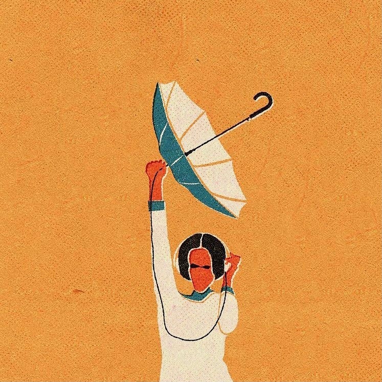 古着が好きで、その配色からインスピレーションを得た色使いを生かして、手の届くところにあるものをモチーフに、「ちょっといいシーン」を描きます。