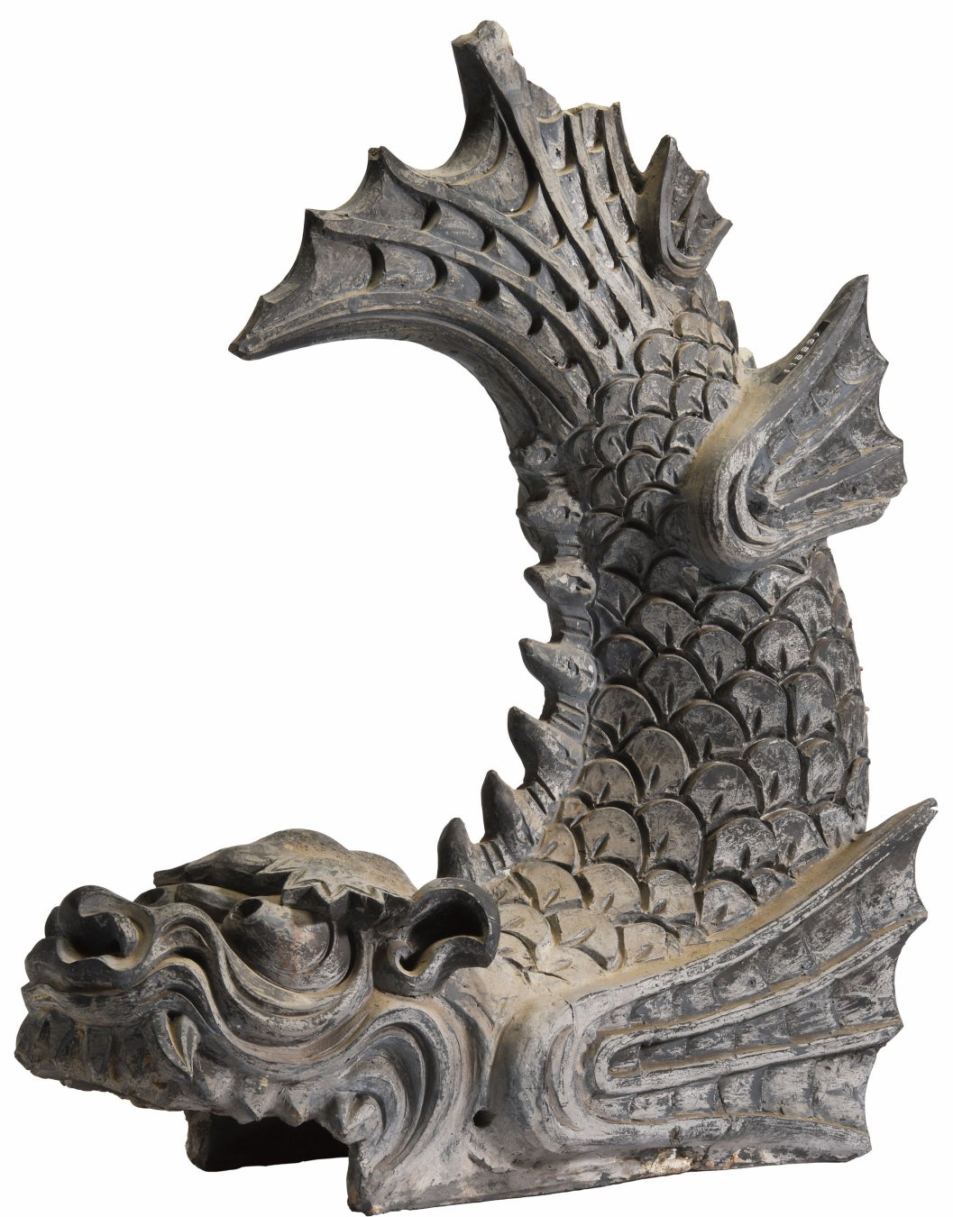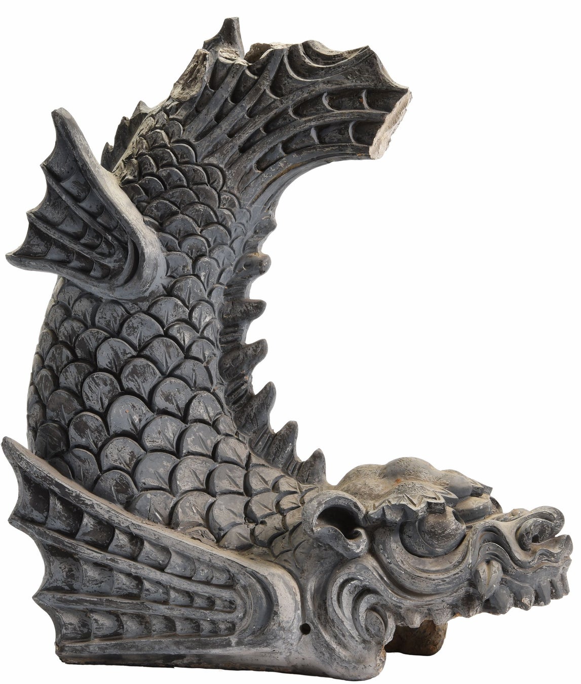 4)端谷城 宝袋文鬼板・鬼瓦・天目茶碗・備前焼小壺・甲