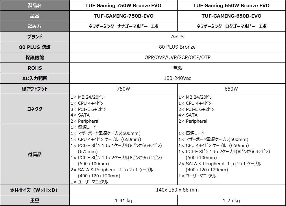 「TUF-GAMING-750B-EVO」「TUF-GAMING-650B-EVO」
