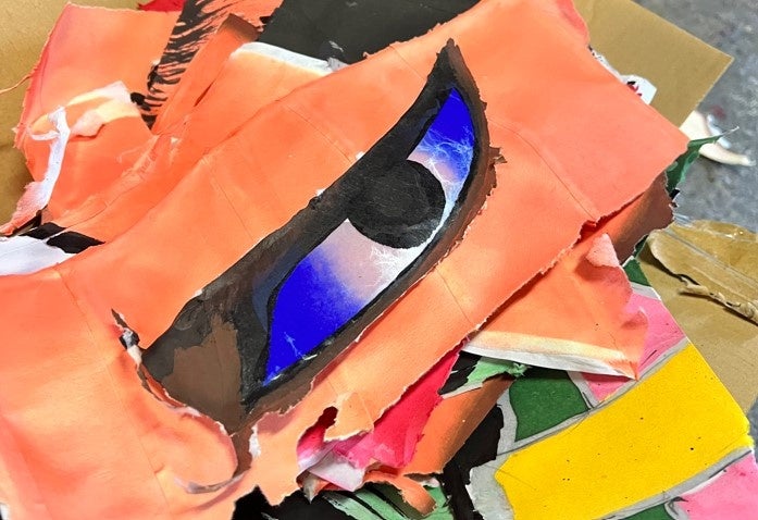 3.完成したNEP*ART TREE (ネップ・アートツリー)。NEP*ARTは「伝統をアートへ」のコンセプトの元、ねぷたの 山車の廃棄する和紙を用いてアップサイクルする、日本の新しい伝統アートです。