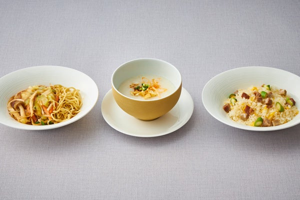 お食事は焼きそば、炒飯、お粥の3種類からお選びいただけます。組み合わせが幾通りにもなりますので、自分好みに組み合わせてご堪能ください。また、ご一緒にお食事する方とそれぞれ違うメニューを頼んでシェアしていただくと、より多くの味わいをお楽しみいただけます。