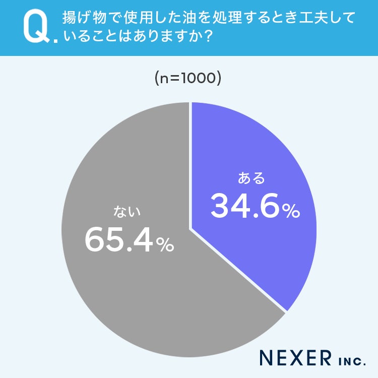 ■34.6%が、揚げ物で使用した油を処理するときに工夫していることが「ある」