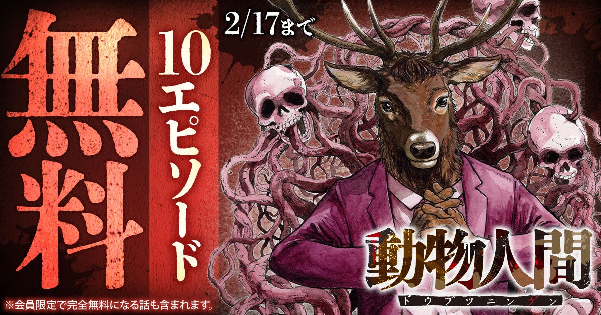 「動物人間」(岡田卓也)がヤングアニマルWebにて10エピソード無料!!