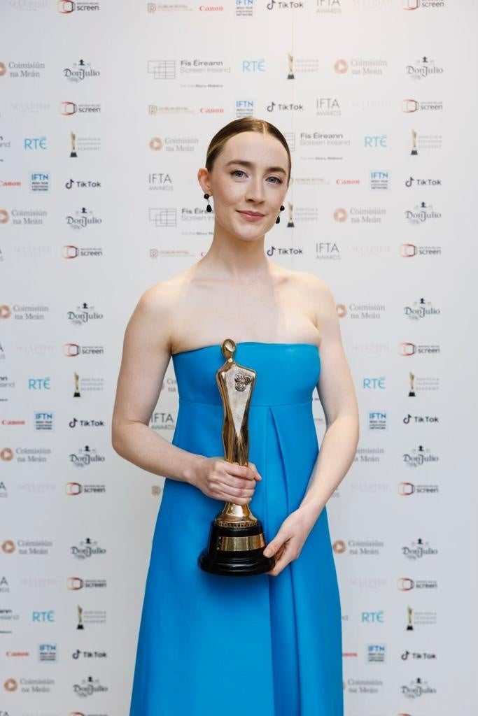 シアーシャ·ローナンが、アイリッシュ·フィルム&テレビアカデミー賞で最優秀主演女優賞と最優秀助演女優賞を受賞し、ルイ·ヴィトンのカスタムメイドドレスを着用し登場しました。