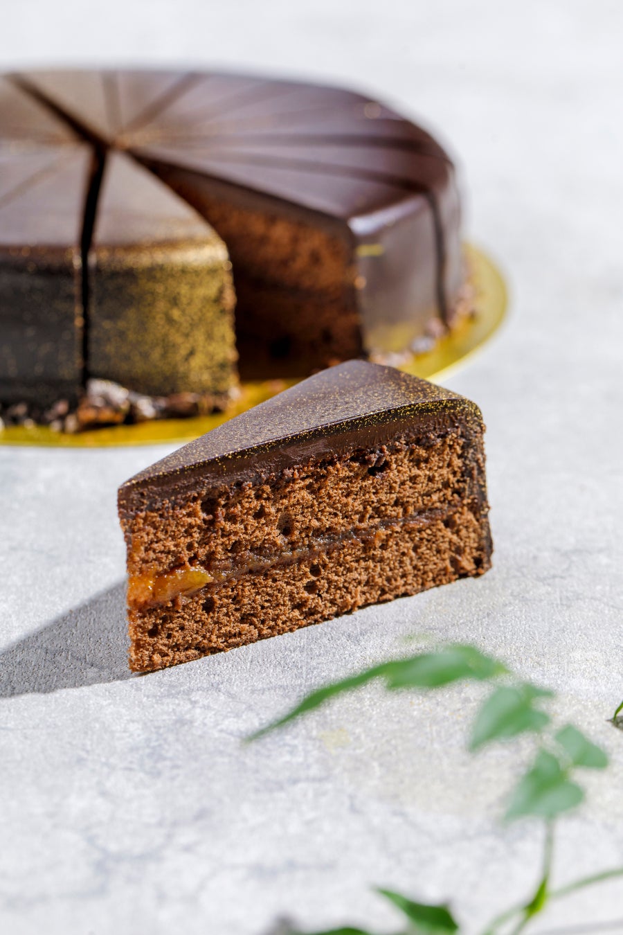 しっとりとしたチョコレートのスポンジの間に甘酸っぱいアプリコットジャムを挟み、チョコレートでコーティングしたザッハトルテ。まろやかな味わいが際立ちます。