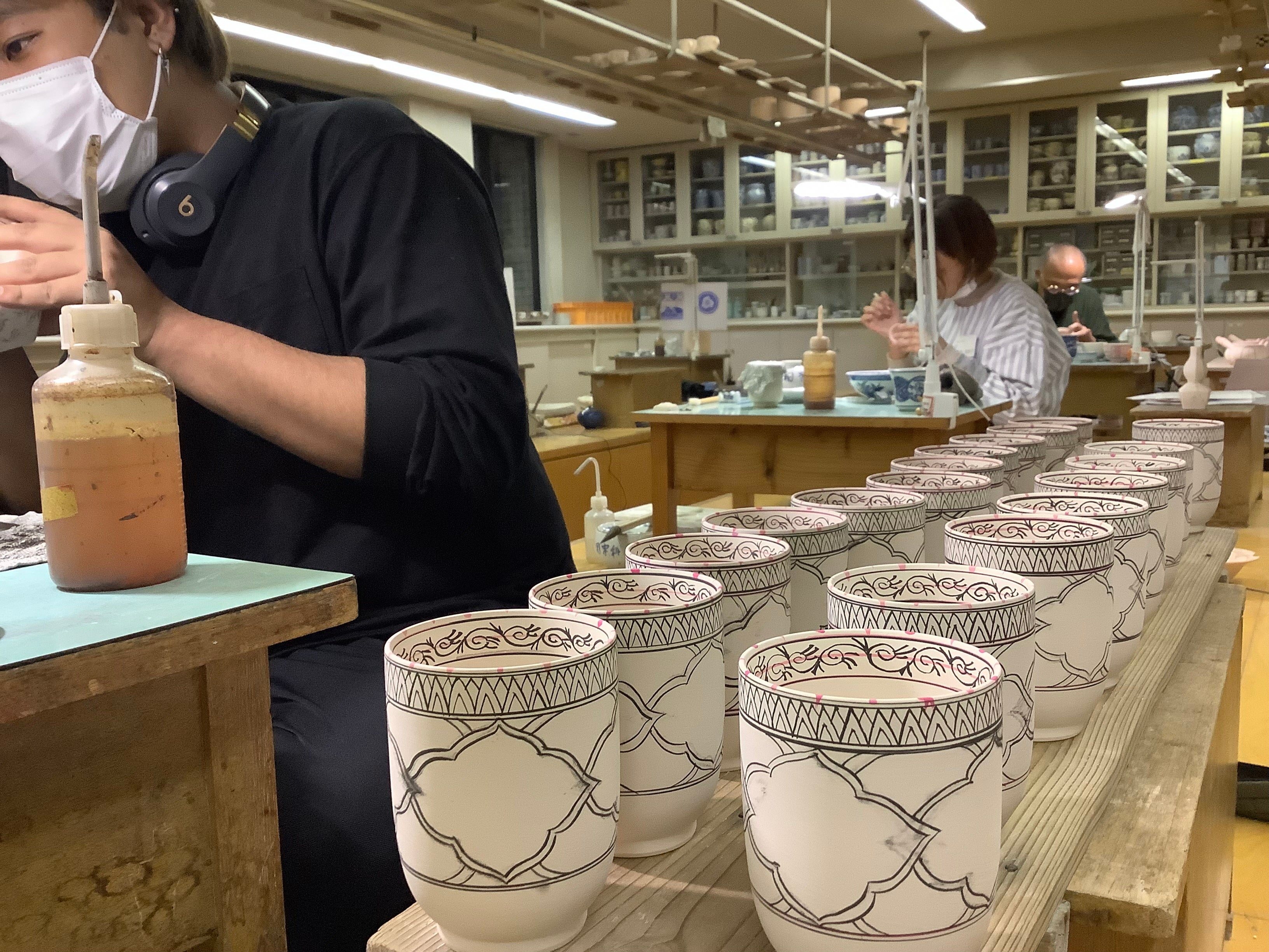 釉薬のことなどの勉強はもちろん、同じ器をはやく作れる、絵付けが見本どおり描けるなど、職人としての技術を学んでいます。