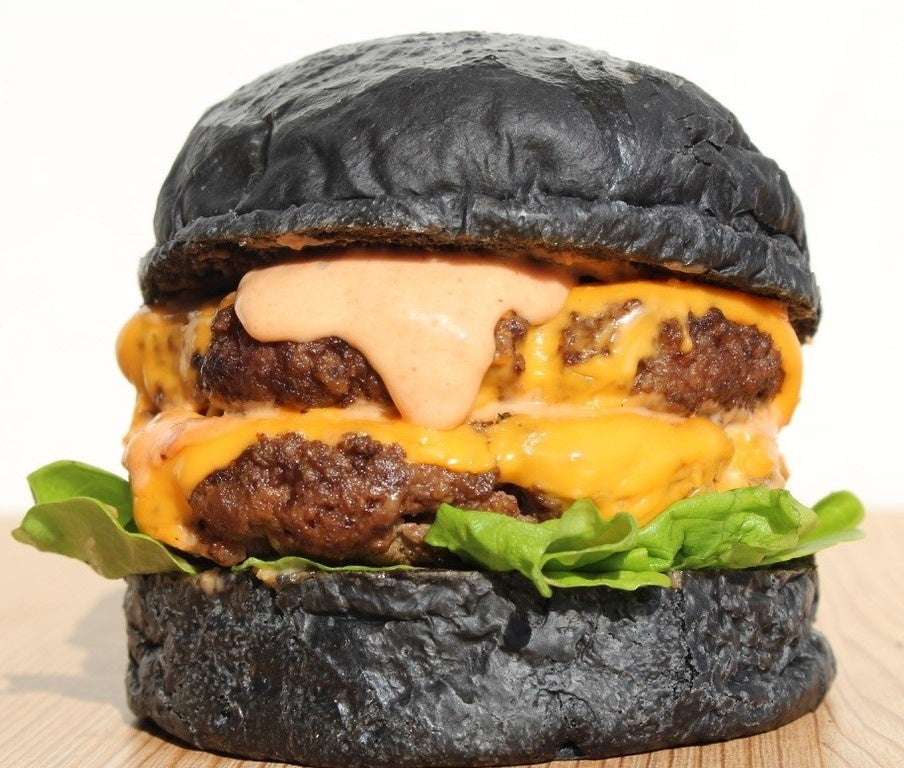 [鹿児島]にくと、パン。/黒毛和牛ダブルチーズバーガー 黒バンズ(1個)1,501円