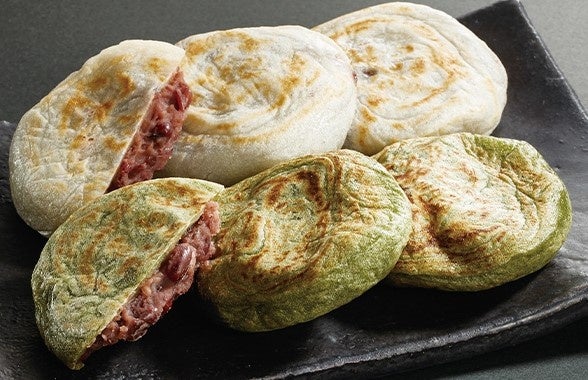 よもぎ梅ヶ枝餅(1包、5個入)751円 ※よもぎ梅ヶ枝餅は前半のみ、各日限定50包、お一人さま1包まで