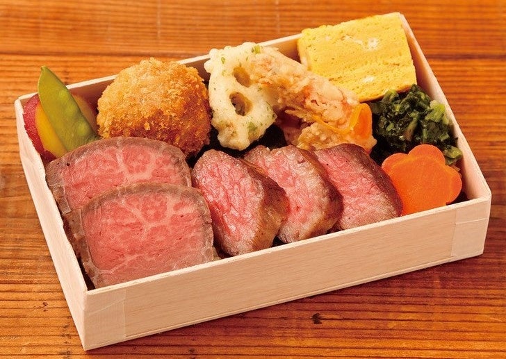『佐賀牛のステーキ、ローストビーフ、メンチカツを味わえるお弁当』