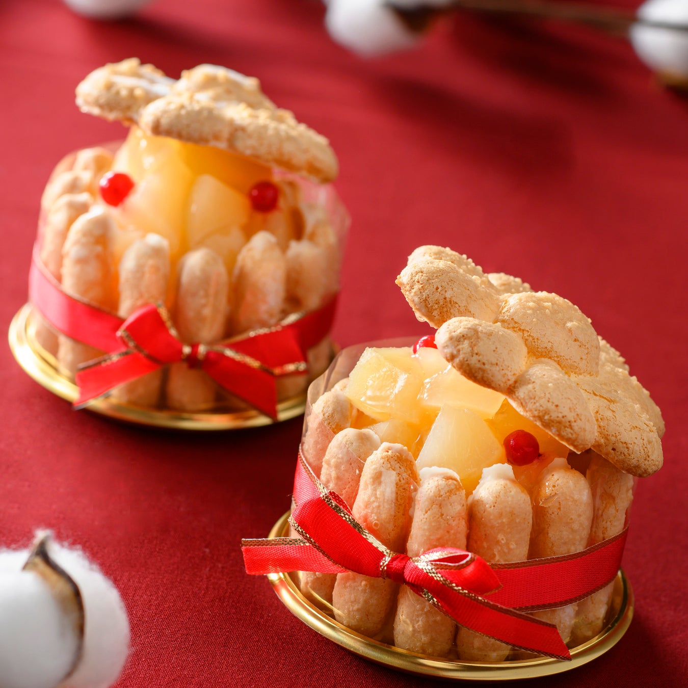 シャルロットとはフランス語で「貴婦人の帽子」。その名の通りの可愛らしい見た目にリボンを添えました。秋の恵みを感じるスイーツです。