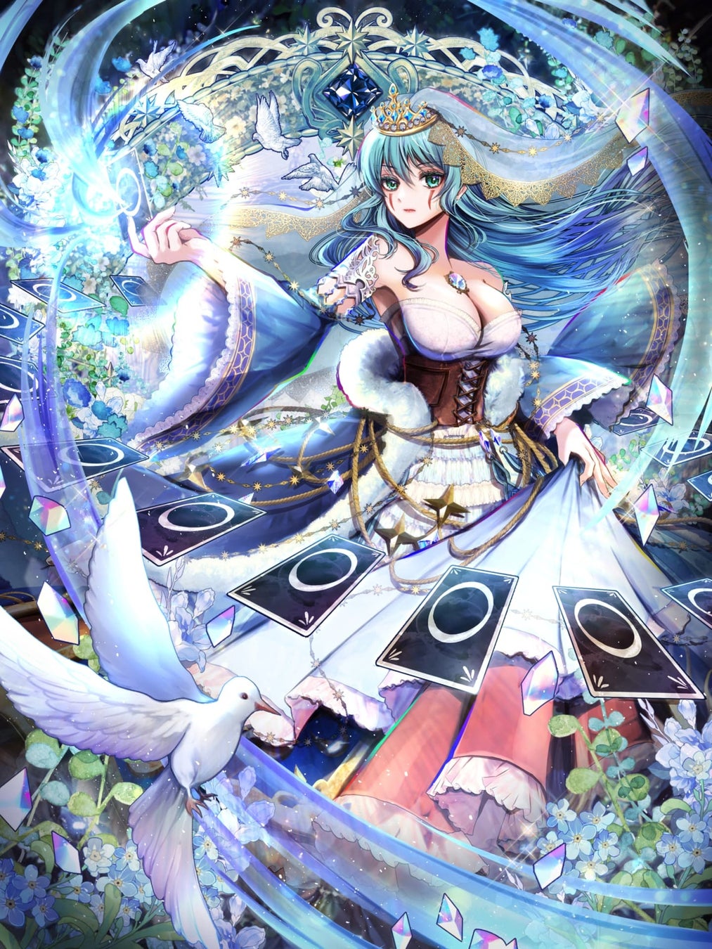 教皇の美しくも芯のある表情、小物やドレスの細やかさ、ジルパワーの演出も迫力があり、目を奪われました。イラスト1枚に、設定や表現したいものを組み込む力もお見事です!