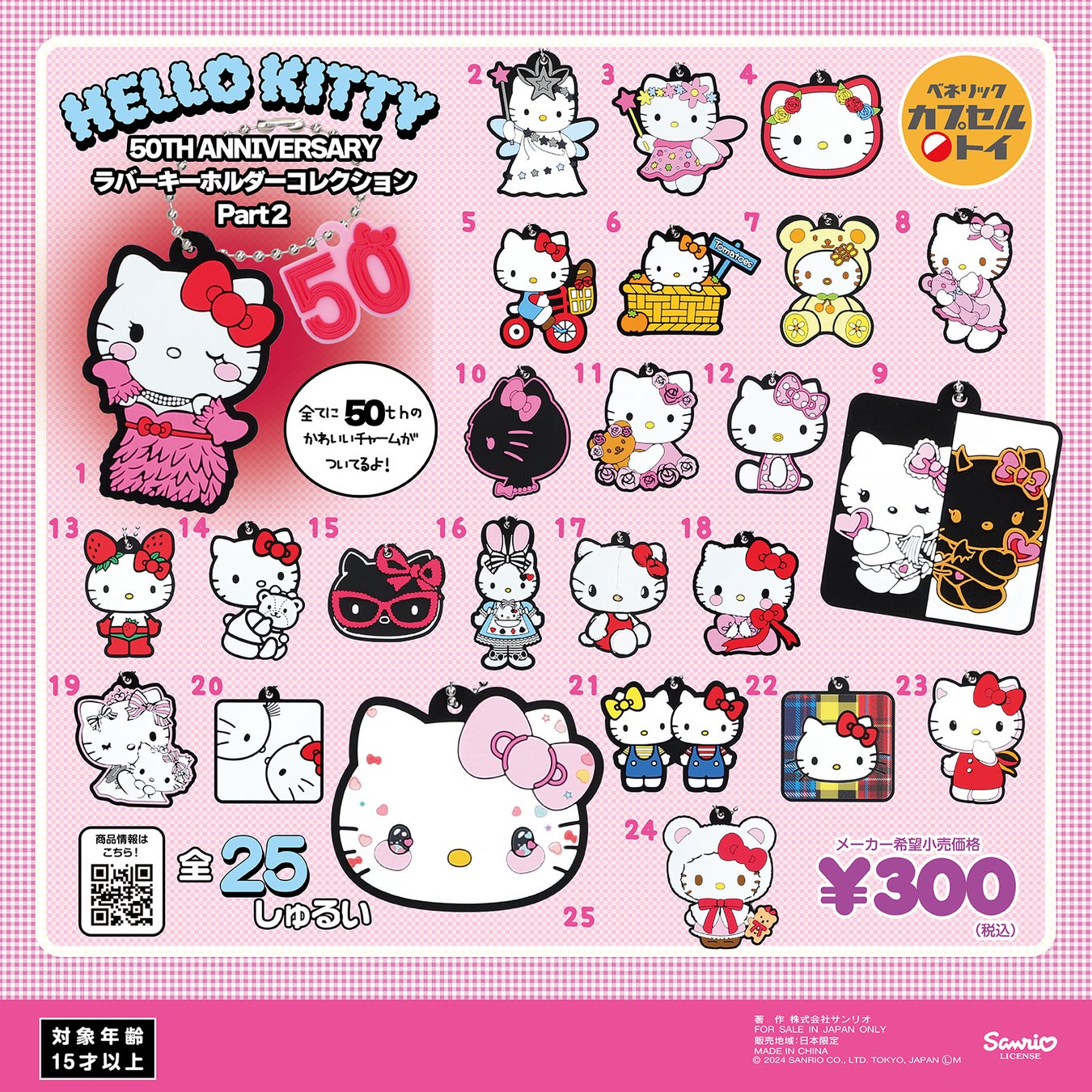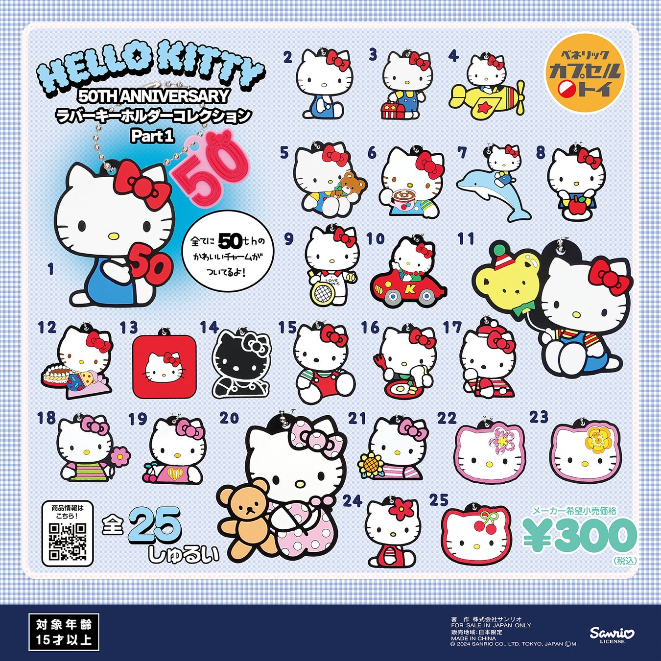 全50種!今年で50周年を迎えたハローキティの「ハローキティ 50TH ANNIVERSARYラバーキーホルダーコレクションPart1・2」が全国のカプセルトイ自販機で2024年11月中旬より順次発売