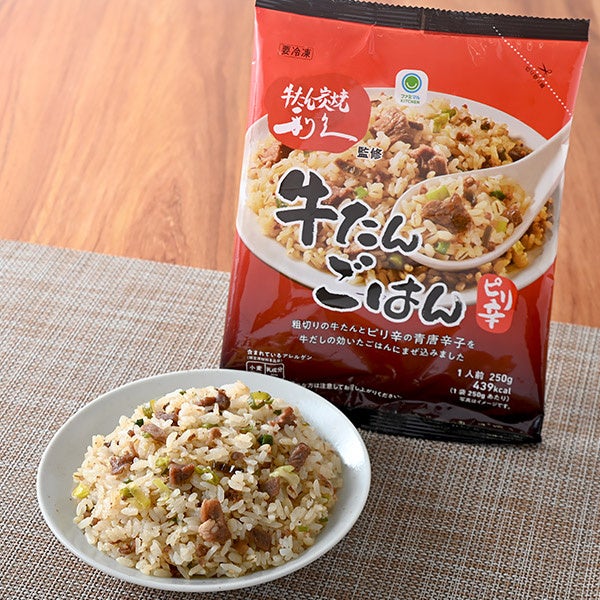【内容】牛だしを効かせたごはんに、青唐辛子のピリッとした辛さをアクセントに加えたまぜごはんです。粗切りにした牛たんを使用しています。(冷凍食品)