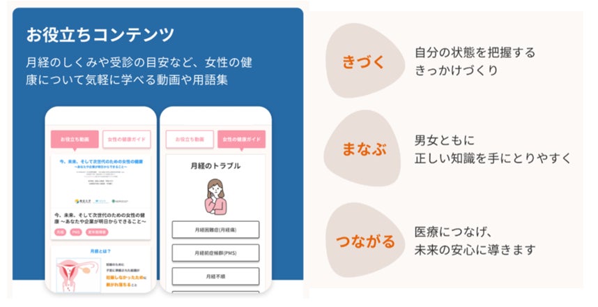 ・月経や更年期など健康課題を「Web上の問診」「E-learning」「チャット相談」等で解決