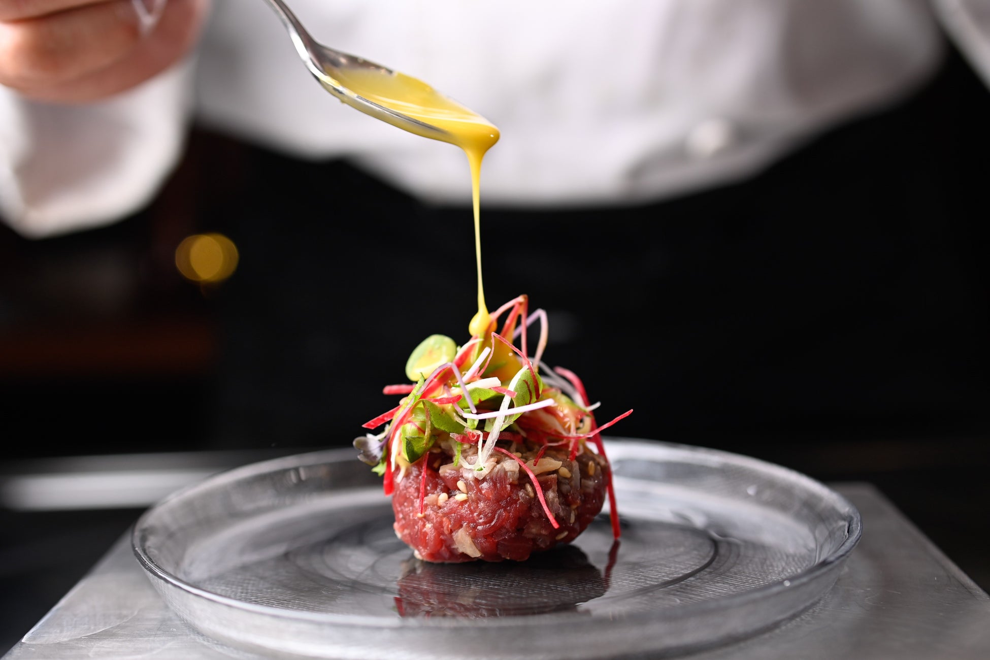 食材を焼き上げる音や香ばしく芳醇な香り、シェフの巧みな技が織りなすライブ感は、鉄板焼きの醍醐味。スパイスや薬味、香辛料にこだわった多彩な肉料理と季節の魚介を特別メニューとしてお届けします。