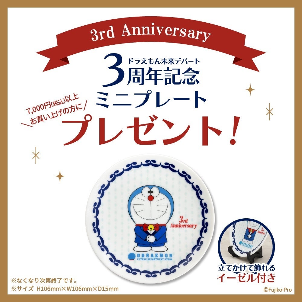 内容:「ドラえもん未来デパート3周年記念ミニプレート」(非売品)をプレゼント