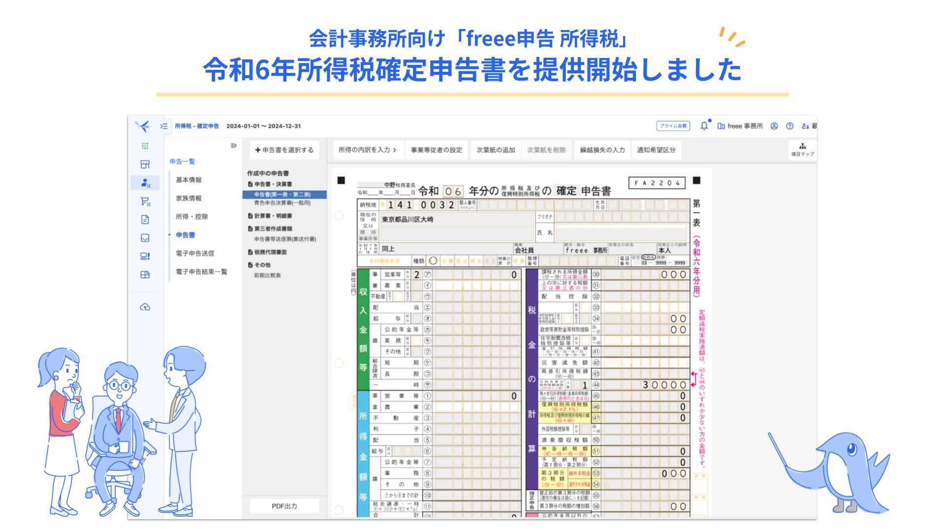 フリー株式会社(本社:東京都品川区、CEO:佐々木大輔、以下「freee」)は、会計事務所向け税務申告サービス「freee申告 所得税」において、令和6年度の所得税確定申告の提供を開始しました。