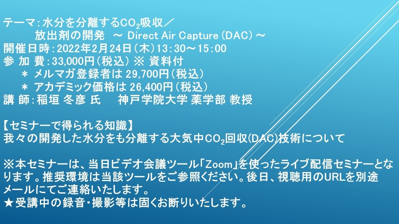 【ライブ配信セミナー】水分を分離するCO2吸収/放出剤の開発 ~ Direct Air Capture (DAC) ~ 2月24日(木)開催 主催:(株)シーエムシー・リサーチ