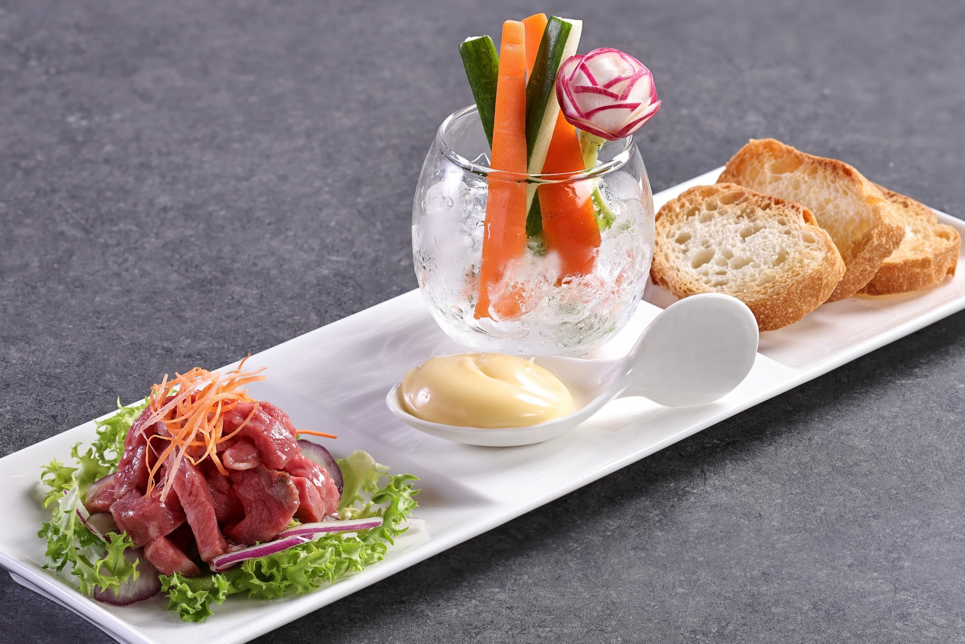 フェア開催に合わせ、レストラン&ラウンジ・バー eu(ゆう)では、「牛フィレ肉のホットサンドウィッチ」など、ビールと相性の良い新メニューを3品ご用意します。また、バーエリアのエントランスにマスターズドリームの特大パネルを掲示する他、テーブルも設置しますので、スタンディングバーとして気軽にご利用いただけます。