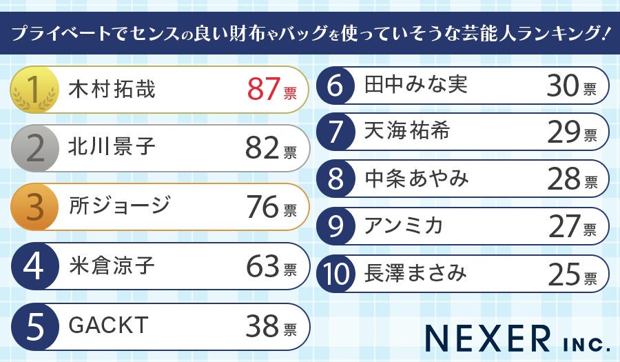 あなたが「プライベートでセンスの良い財布やバッグを使っていそう」だと思う芸能人はランクインしていましたか?