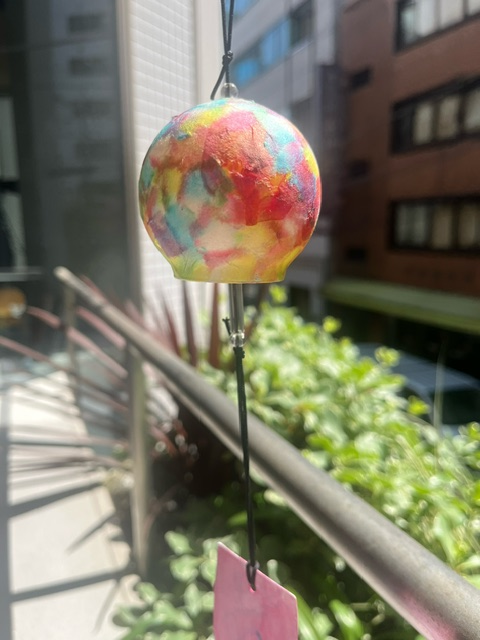 好きな色・模様に染まった和紙で、うちわまたは風鈴の作品を制作。