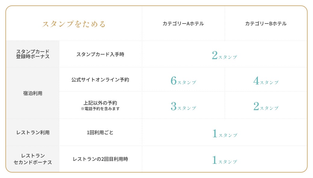 公式WEB予約以外のご宿泊でもスタンプはたまります
